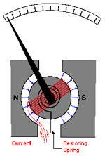 - The commonly used analogue meter movement is the moving coil meter – a small current in the coil sets up a magnetic field that causes the meter to rotate; the rotation is opposed by the spring, so that deflection is proportional to the average value of the current
